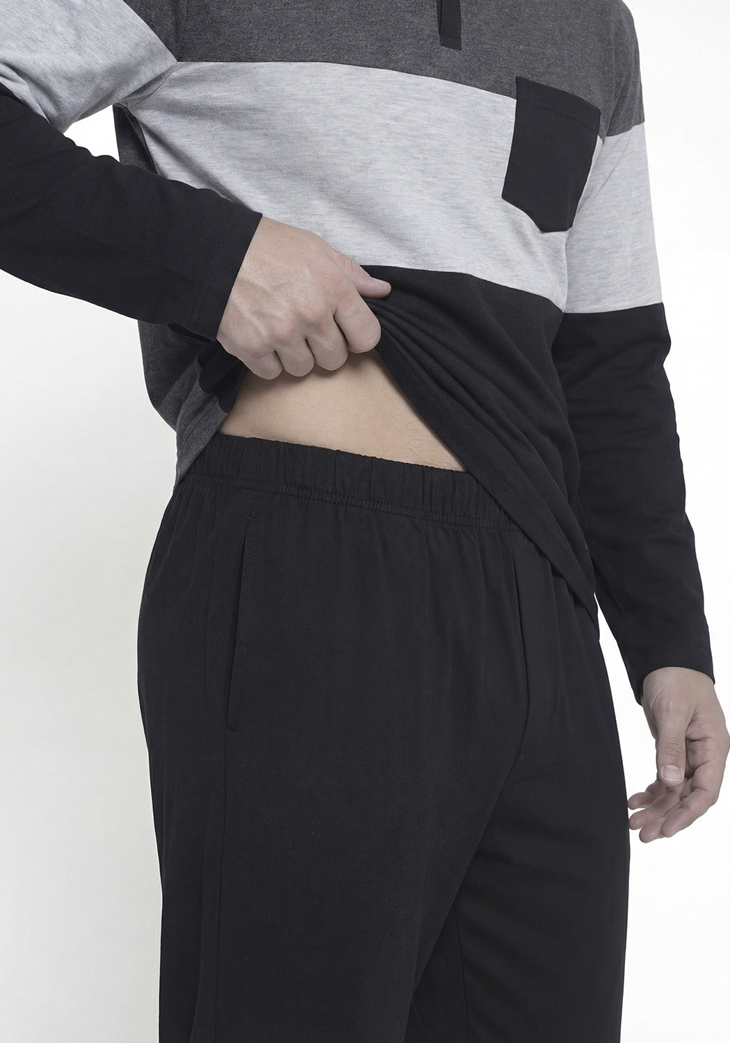 Imagina llegar a casa después de un largo día y envolverte en la suavidad de nuestro pijama de algodón negro. Diseñado para ofrecerte el máximo confort, este pijama se siente ligero y agradable sobre la piel, permitiéndote disfrutar de cada momento de descanso. Su composición de 60% algodón y 40% poliéster brinda una suavidad excepcional y una caída perfecta que se adapta a tu cuerpo. Perfecto para esos días de relajación en casa o para tus noches de sueño reparador, este pijama largo se convertirá rápidamente en tu favorito. Además, su diseño clásico en color negro lo hace versátil, permitiendo que lo combines con cualquier prenda de descanso. Su mantenimiento es sencillo; puedes lavarlo a máquina en agua fría para cuidar sus colores y estampados. Recuerda, es mejor no usar plancha ni secadora para prolongar su vida útil. Este pijama no solo es una prenda, es una invitación a disfrutar de momentos de tranquilidad y bienestar. Ideal para esos días en los que solo quieres sentirte cómodo y relajado. Dale a tus noches el toque de confort que mereces con este pijama que se adapta a tu estilo de vida. Con su diseño pensado para el uso diario, tendrás la solución perfecta para tus noches y días de descanso. Haz de tus momentos en casa una experiencia única con nuestro pijama de algodón negro.