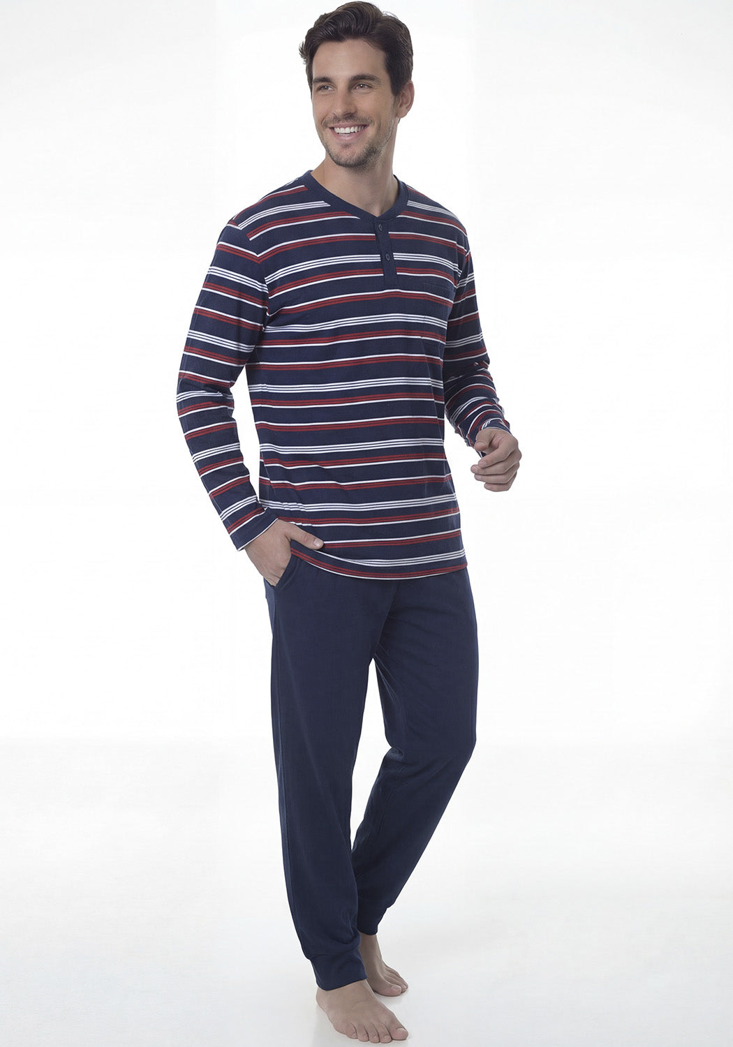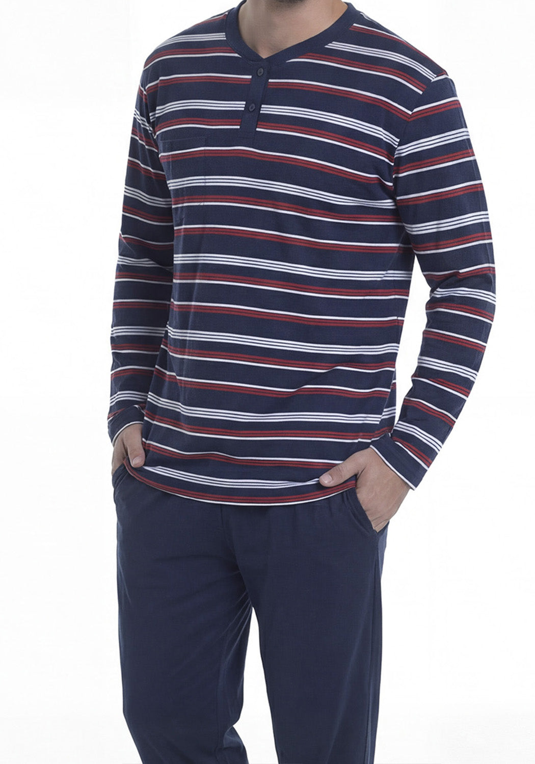 El pijama de algodón rojo de Kayser es la elección ideal para tus noches de descanso. Cada detalle ha sido pensado para brindarte esa sensación de suavidad y confort que tanto mereces. Su tejido de 60% algodón y 40% poliéster se siente ligero sobre la piel, permitiendo que te muevas con total libertad mientras duermes o te relajas en casa. Con un diseño atractivo y moderno, este pijama no solo es cómodo, sino que también añade un toque de estilo a tus momentos de descanso. Su color vibrante te hará sentir animado y listo para disfrutar de un buen día. Es perfecto para esos días en los que solo quieres acurrucarte en el sofá o disfrutar de una película en casa. Además, su mantenimiento es sencillo: puedes lavarlo a máquina en agua fría para preservar sus colores y estampados. Recuerda que no es recomendable plancharlo, usar cloro o secadora. Así podrás disfrutar de tu pijama durante mucho más tiempo sin preocupaciones. Dile adiós a las prendas incómodas y dale la bienvenida a la suavidad de Kayser. Ideal para hombres que buscan un pijama largo que les brinde comodidad en cada momento del día y de la noche, este pijama se convertirá rápidamente en tu favorito. Atrévete a sentir la diferencia en tu descanso diario con este pijama que combina estilo y confort en cada costura.